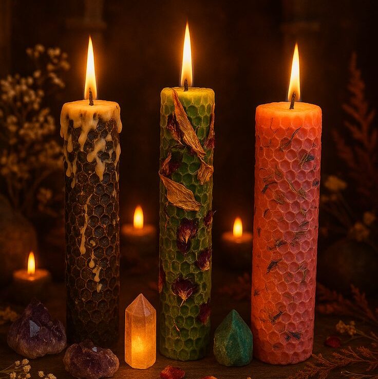 • Cómo usar: Enciéndelas los jueves o domingos, visualizando prosperidad. Puedes ungirlas con aceite de la abundancia.
